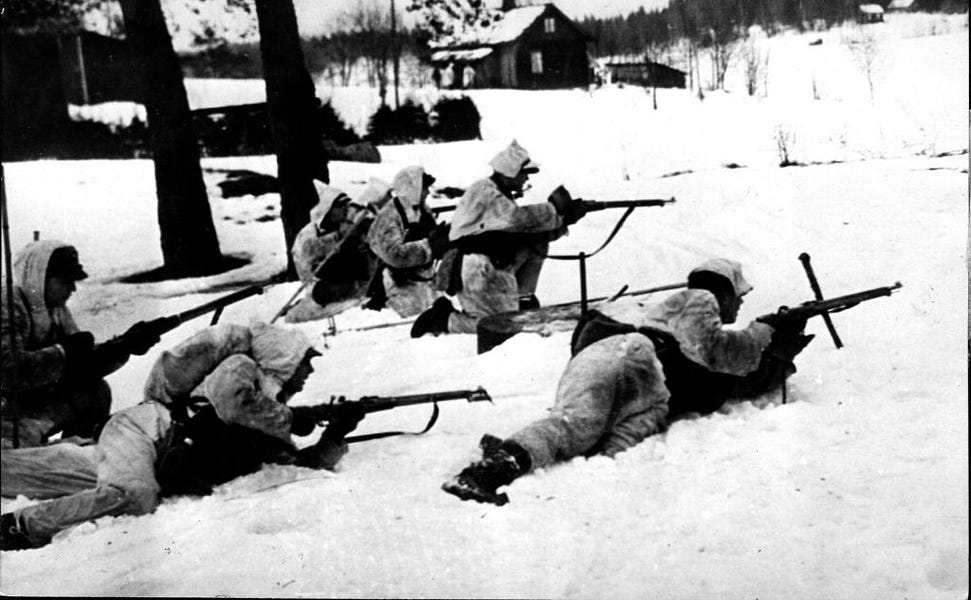 Ries: Yes! And this is where we get into some similarities with the current Ukraine war. Stalin’s initial belief, and this belief was shared by most of the Western states, was that the Red Army would have occupied Helsinki within two or three weeks. This was reasonable, the Soviets had about four times as many troops in this fight as the Finns did and way many more tanks. The Soviets had a very mechanized, motorized army while the Finns basically still had an army of foot soldiers, with hardly any tanks and a very limited air force. We also know that the Red Army was expecting to occupy Helsinki within a few weeks, because when the Finns destroyed some Soviet units earlier in the war they found marching band equipment and a bunch of fancy dress uniforms that the troops were supposed to wear when they were marching through Helsinki.
