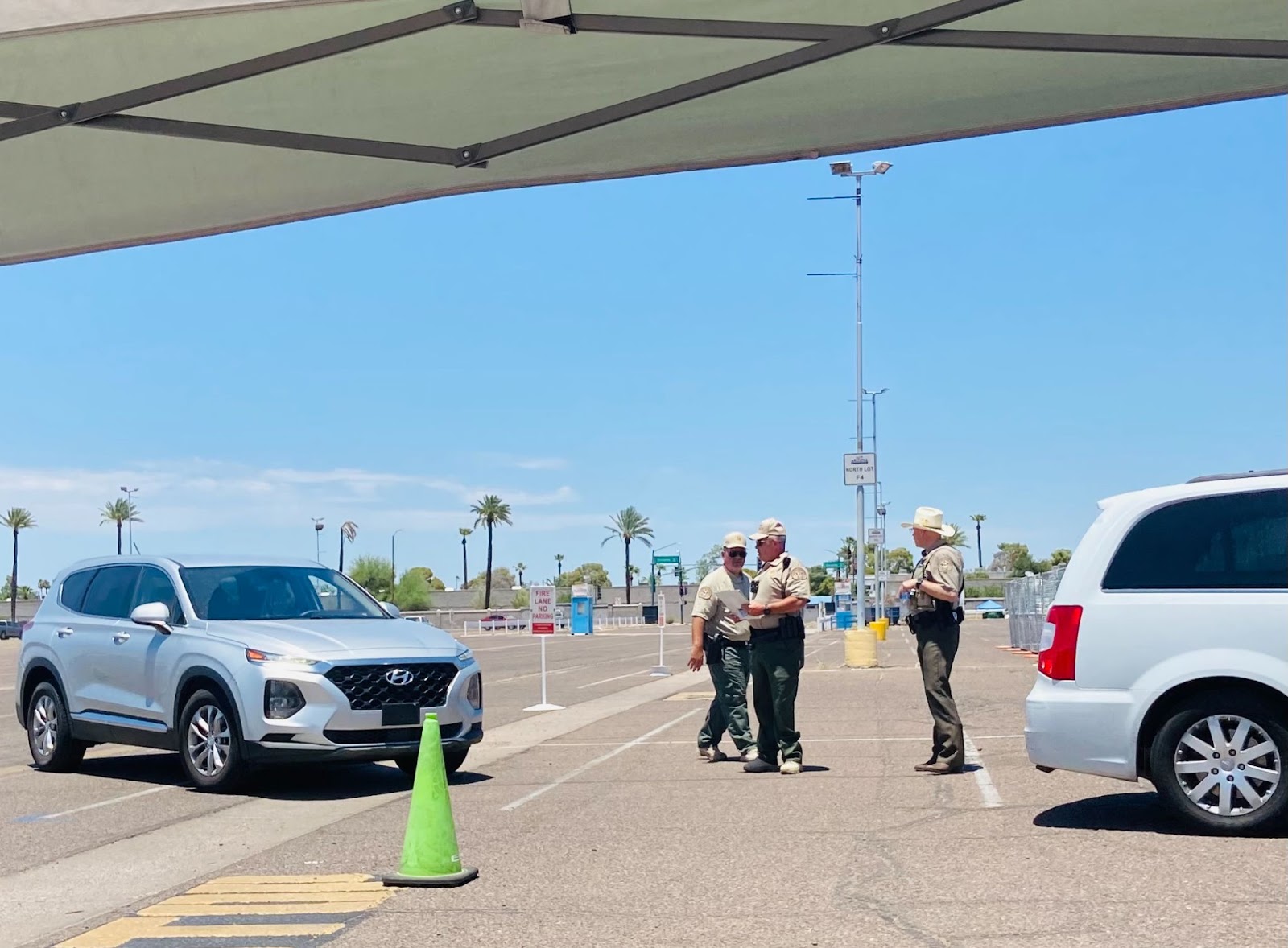 PHOENIX—In the parking lot outside the Arizona Veterans Memorial Coliseum last Thursday, a small group of Arizona Rangers were chatting under a flimsy white tent as the sun beat down on the asphalt. As he fiddled with the outdoor fan underneath the tent, a lead member of the security team jokingly asked the Arizona Rangers how he could tone down the afternoon’s 106 degree dry heat. “A 35-foot airstream—have Donald Trump bring one down for us,” a mustachioed Ranger named Terry teased in response.