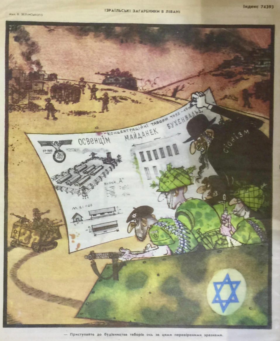 Soviet propaganda depicted the Nazis as an ultimately anti-Soviet project of sinister anti-Communist banker conspiracies. Israel was also depicted as an anti-Soviet project of sinister anti-Communist banker conspiracies. There were of course other major tools of anti-Soviet conspiracies, like, for example, Ukrainian nationalism. Soviet propaganda also depicted Ukrainian nationalists as Nazis, and just as today’s Russian Foreign Ministry attacks Zelensky by focusing on Jews who “collaborated” with the Nazis, Soviet propagandists would raise the specter of Ukrainians who collaborated with the Nazis in order to attack the idea of an independent Ukraine.