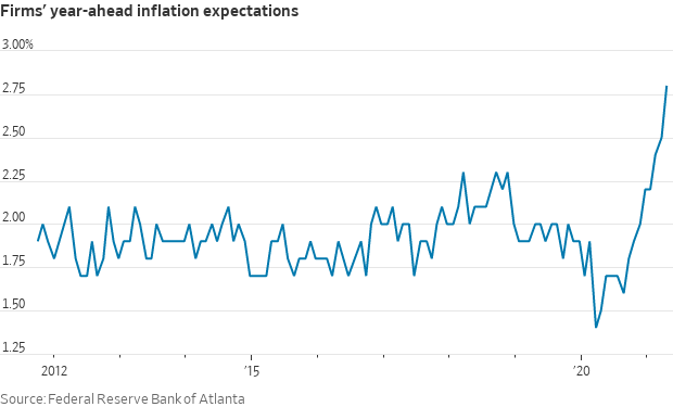 International stuff: Events abroad are the last ingredient to the current market situation. Beyond the obvious hiccups that localized events—pandemic-related or otherwise—can have on the production, distribution, and price of specific goods and services abroad, researchshows that globalization of supply chains, financial markets, and even economic theory (carried out by central banks) can globalize inflation too. When it comes to the U.S. market, this phenomenon can work both ways: countries like India (or, to a much lesser extent, Japan) that are still struggling to contain COVID-19 could depress global output and demand, but countries that are reopened and swimming in their own stimulus could do the opposite. On the latter score, it’s notable that China—whose imports used to lower U.S. prices—may now be exporting price pressures abroad: “With China being the world’s biggest exporter, its rising cost pressures for the nation’s factories pose another risk to global inflation as manufacturers start passing on higher prices to retailers.”