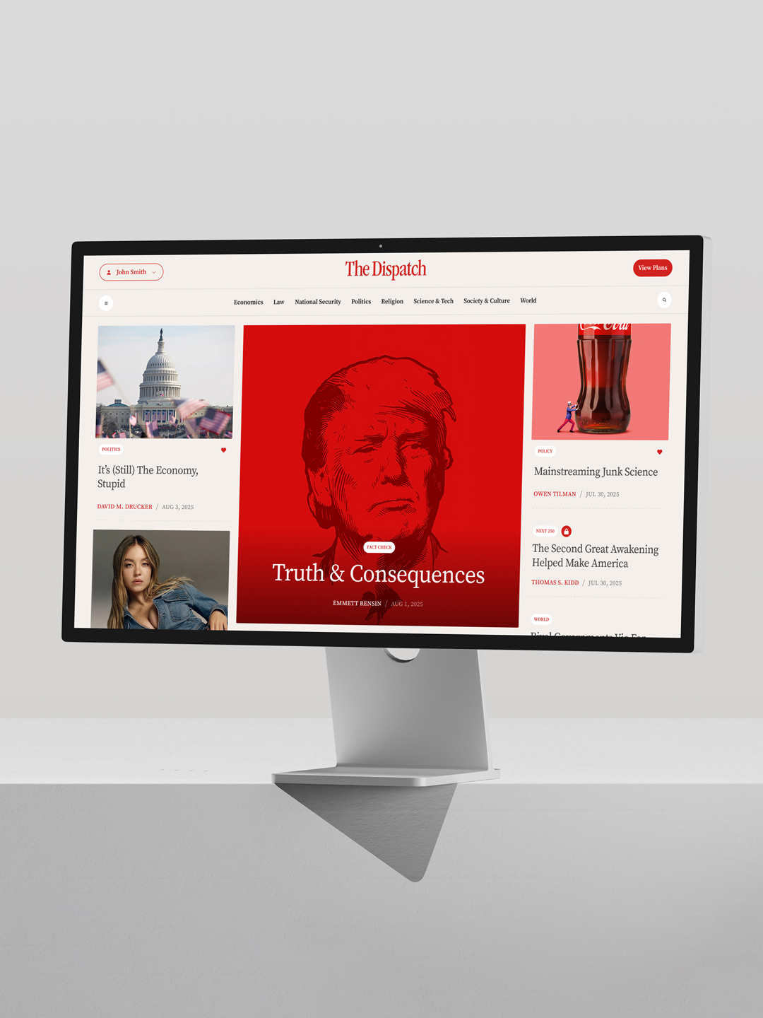 Please note that we at The Dispatch hold ourselves, our work, and our commenters to a higher standard than other places on the internet. We welcome comments that foster genuine debate or discussion—including comments critical of us or our work—but responses that include ad hominem attacks on fellow Dispatch members or are intended to stoke fear and anger may be moderated.