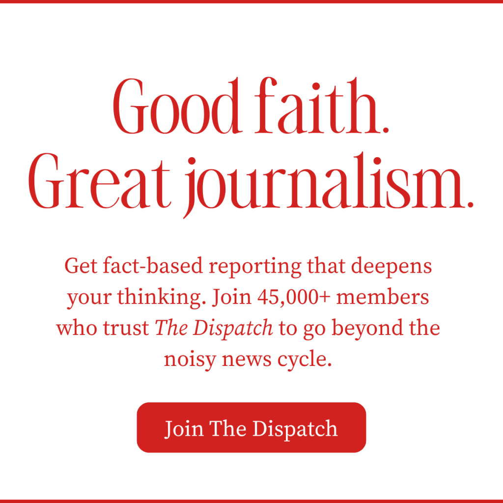 Typically, The Morning Dispatch’s main story is cut off here, with the full item reserved for paying members. We are unlocking the newsletter this week to give free readers a taste of what they’re missing out on. To get the full version in your inbox every day—and unlock all of our stories, podcasts, and community benefits—join The Dispatch as a paying member.