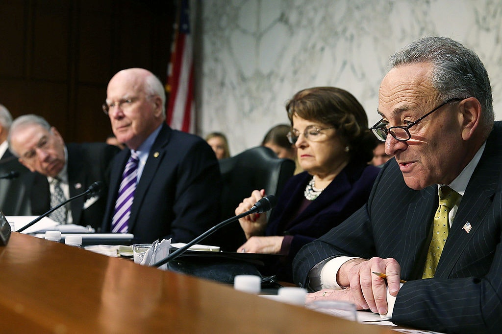 A newsletter that started with a discussion on the graying of the federal government got topped with a photo with three of the five oldest senators, from left, Chuck Grassley (88), Pastrick Leahy (81), and Dianne Feinstein (88) with whippersnapper Chuck Schumer, a mere 71. And your winner is: